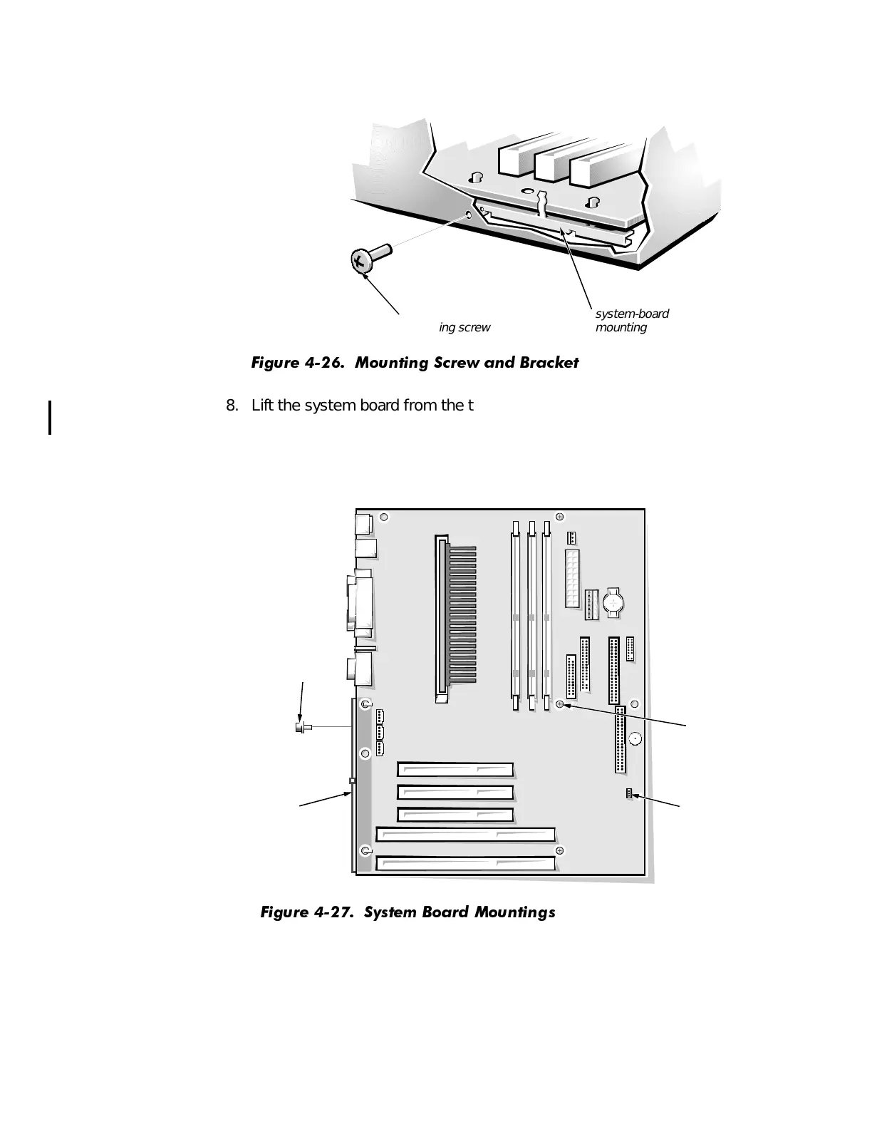 8. Lift the system board from the three plastic standoffs that secure the sys-