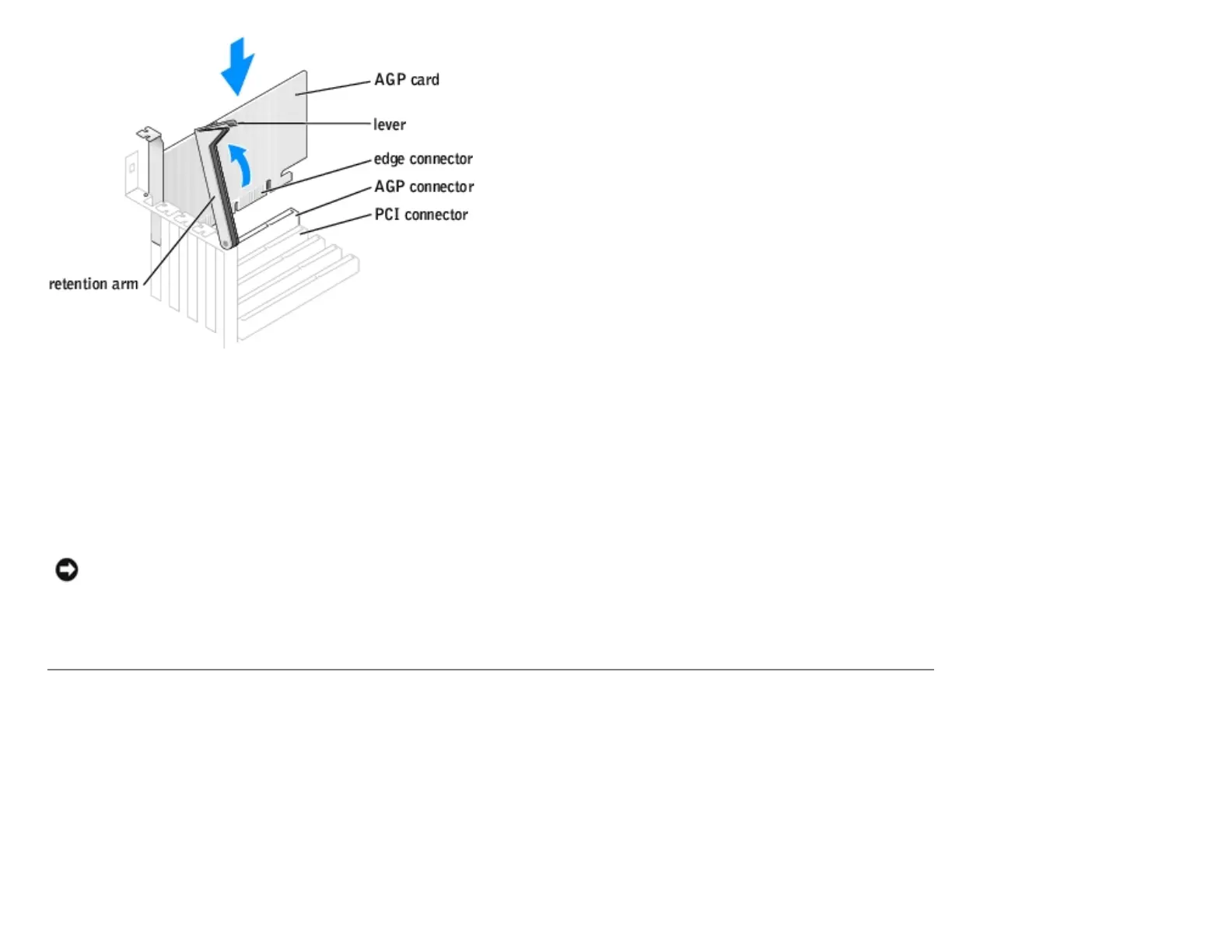 4. Gently press the card into the AGP connector until it clicks into place, ensuring that the tab fits into the notch on the