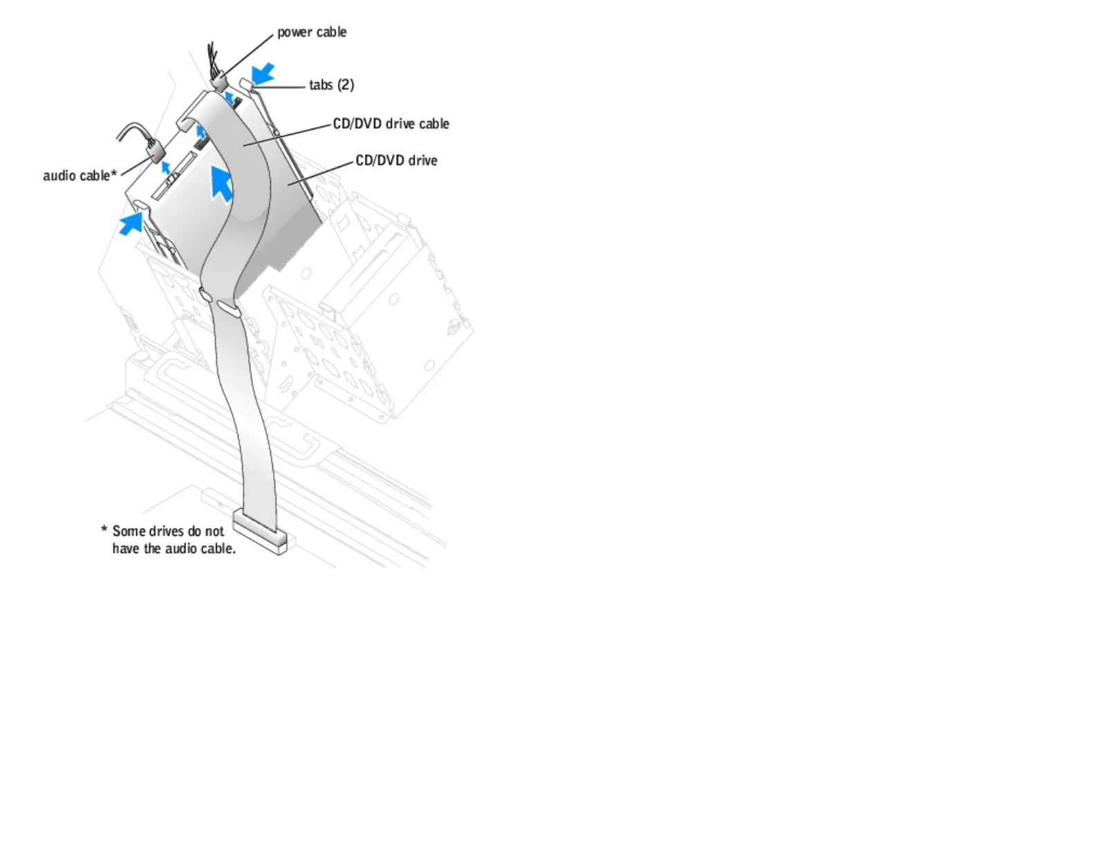 4. Press inward on the two tabs on the sides of the drive, and then slide the drive upward and remove it from the drive