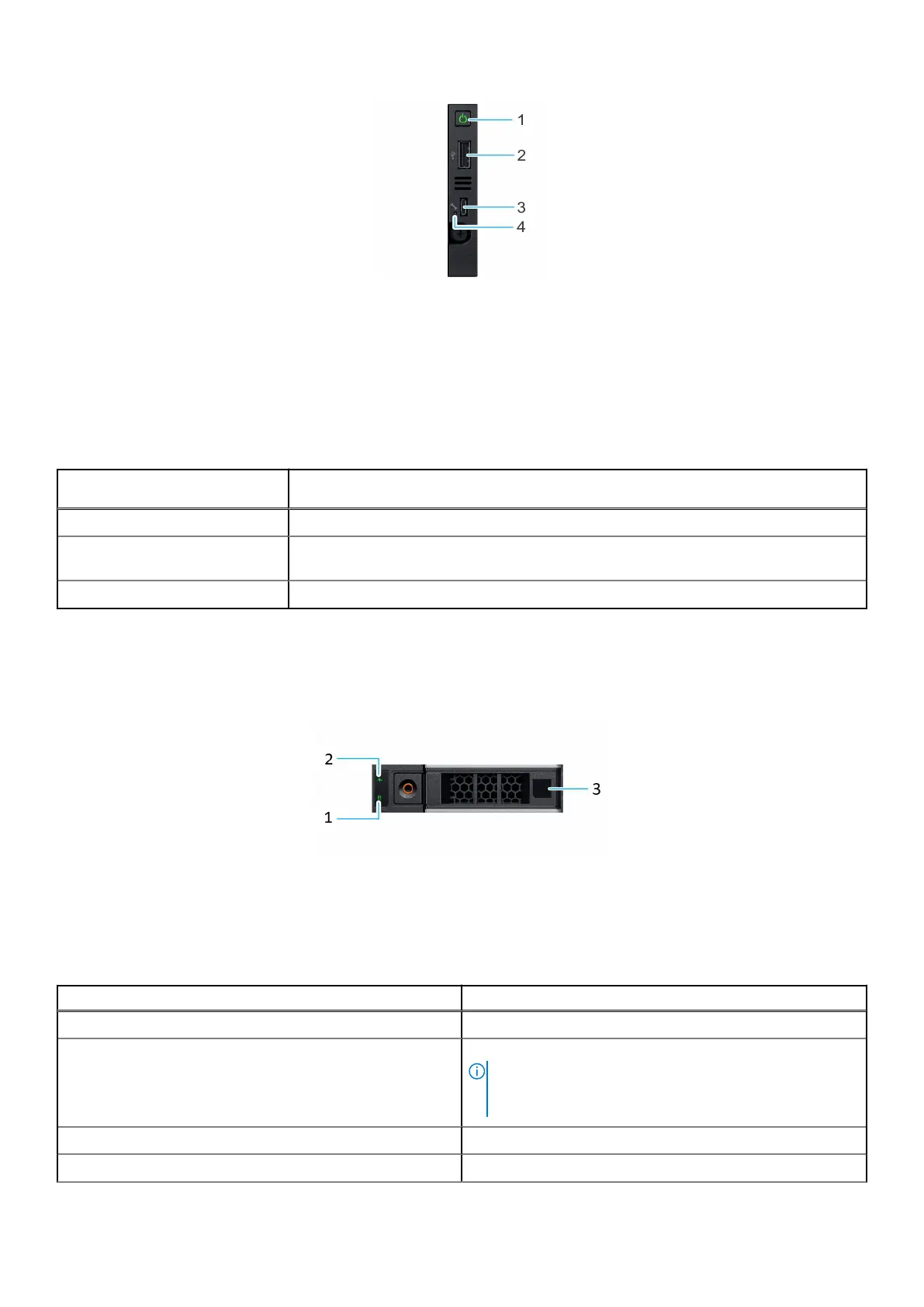 3. Micro USB 2.0-compliant port for iDRAC Direct 4. iDRAC LED indicator