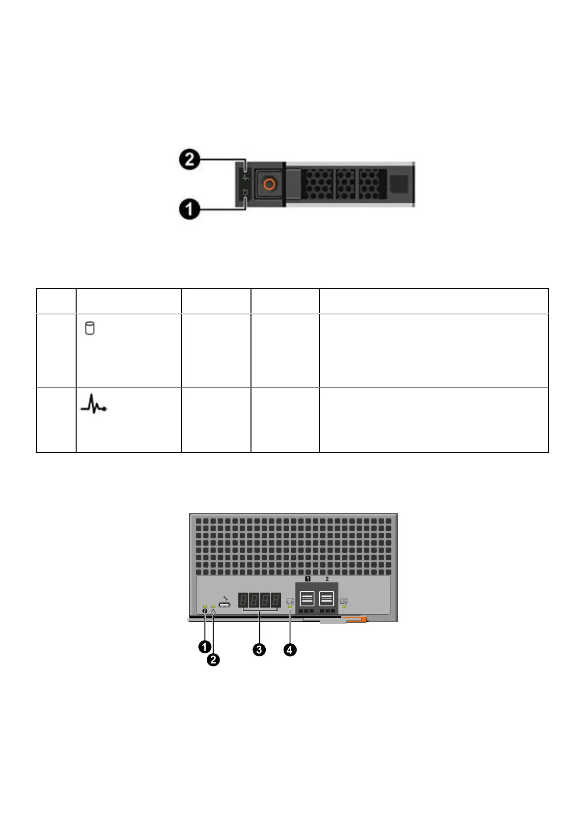 The drive carrier LEDs are identified in the figure, and the LED behavior is described in the table following the figure.