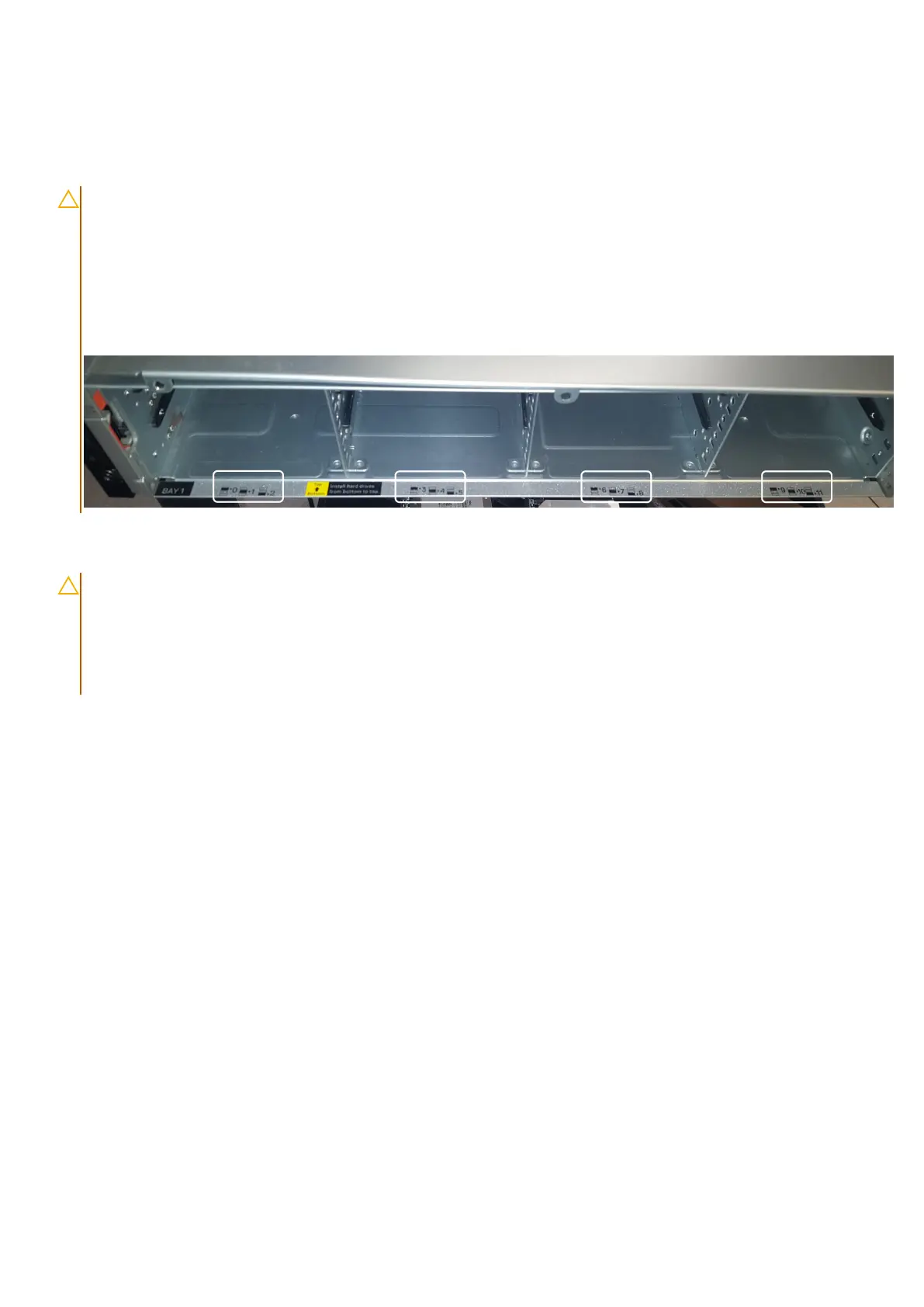 You should populate the drives in a bottom to top order to avoid the metal stops from bending in the drive cage