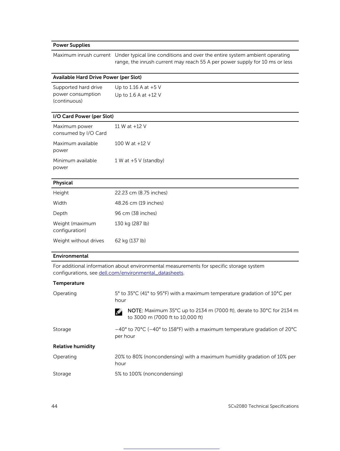 For additional information about environmental measurements for specific storage system