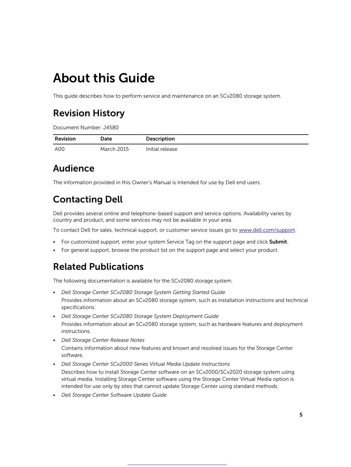 • Dell Storage Center SCv2080 Storage System Getting Started Guide
