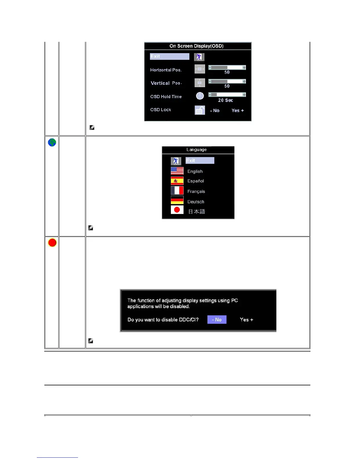 NOTE:If user select 'disable' for DDC/CI,the warning message will appear on screen.Then user can select Yes or No according