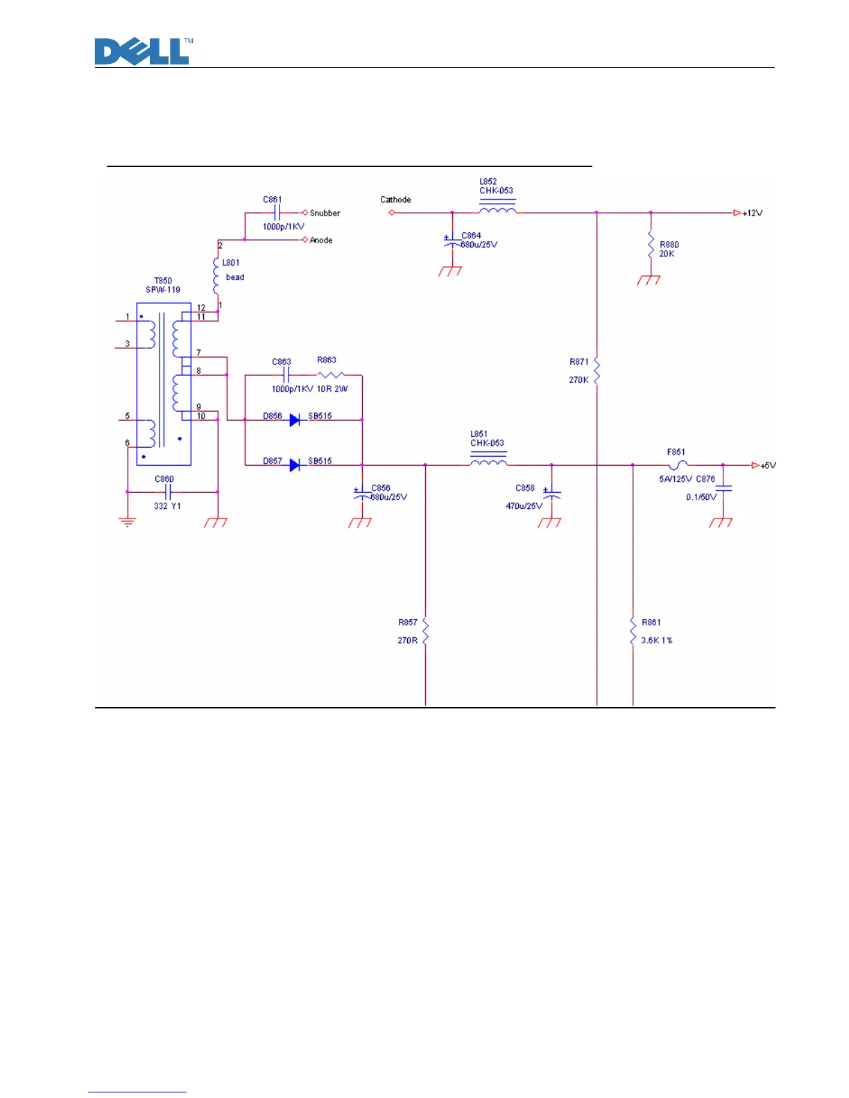 Dell E1709W - DC 12 V and 5 V Output Circuit and Feedback; I;F Board Circuit