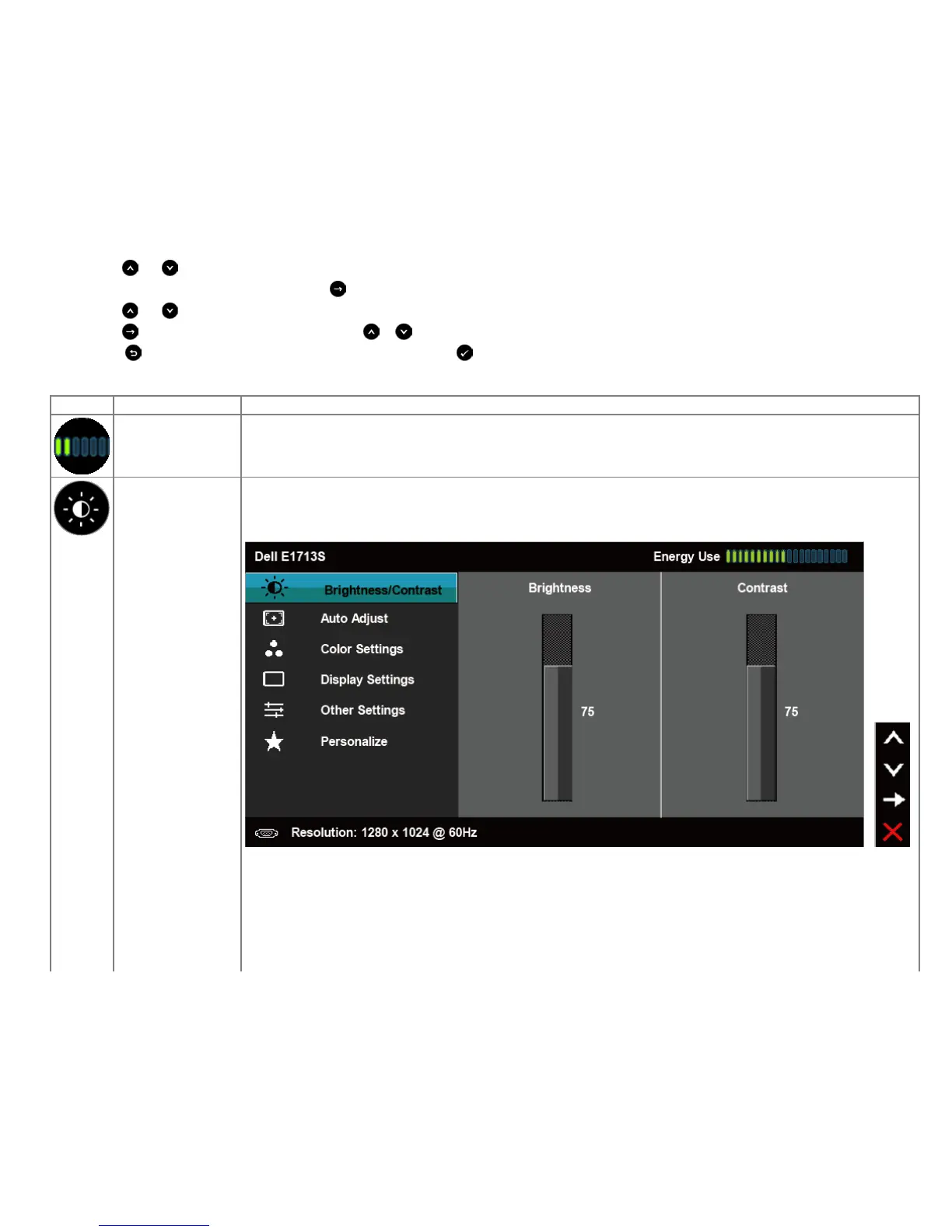 5. Press the button to enter the slide bar and then use the or buttons, according to the indicators on the menu, to make your changes.