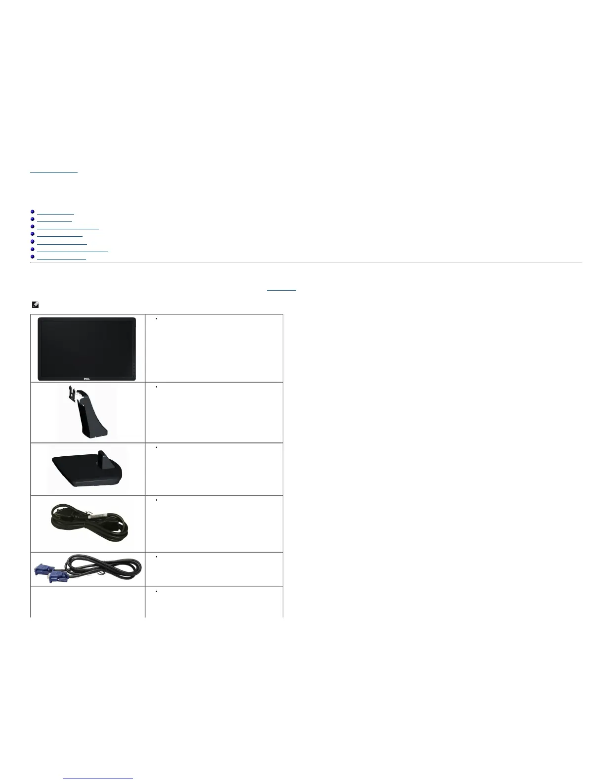 Your monitor ships with all the components shown below. Ensure that you have received all the components and Contact Dell™ if anything is missing.