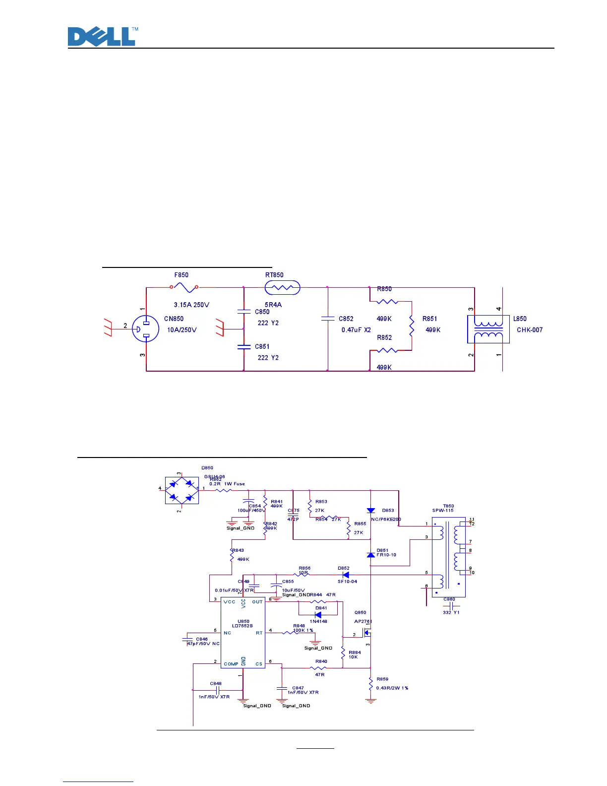 CN850 is a connector for connecting AC Power. F850 is a fuse to protect all the circuit AC. Input
