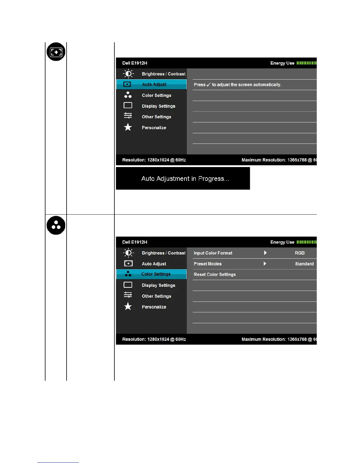 NOTE: Auto Adjust does not occur if you press the button while there are no active video input signals or attached cables.