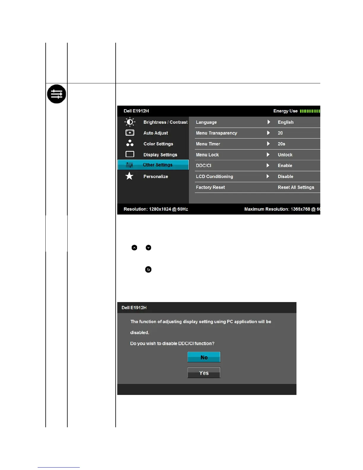 Disable: Disables the DDC/CI option and the following message appears on the screen.