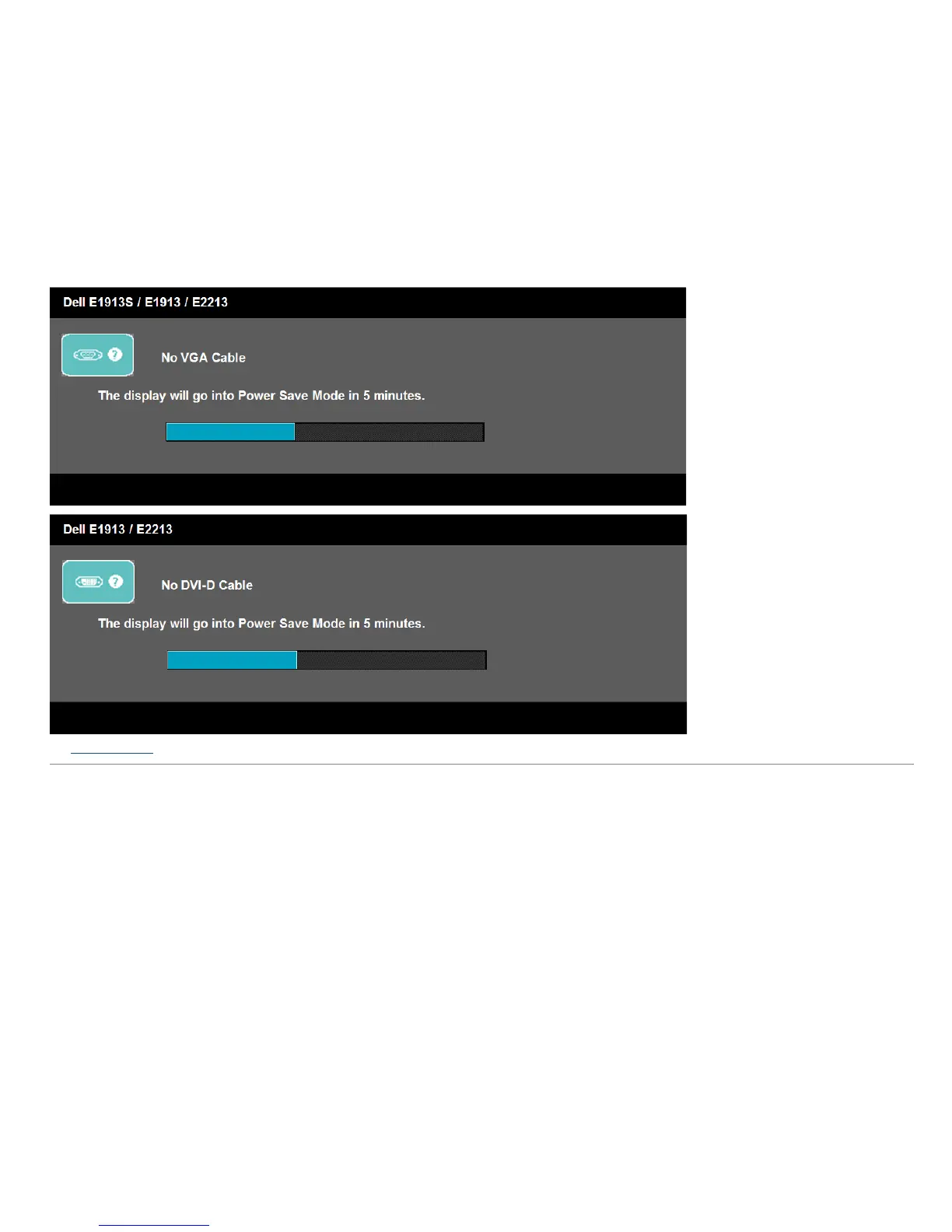 If VGA or DVI cable is not connected, a floating dialog box as shown below appears. The monitor will enter Power Save Mode after 5 minutes if left at this state.