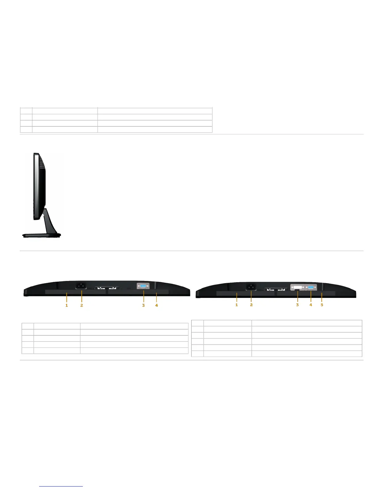 4 VGA connector To connect your computer to the monitor using a VGA cable.