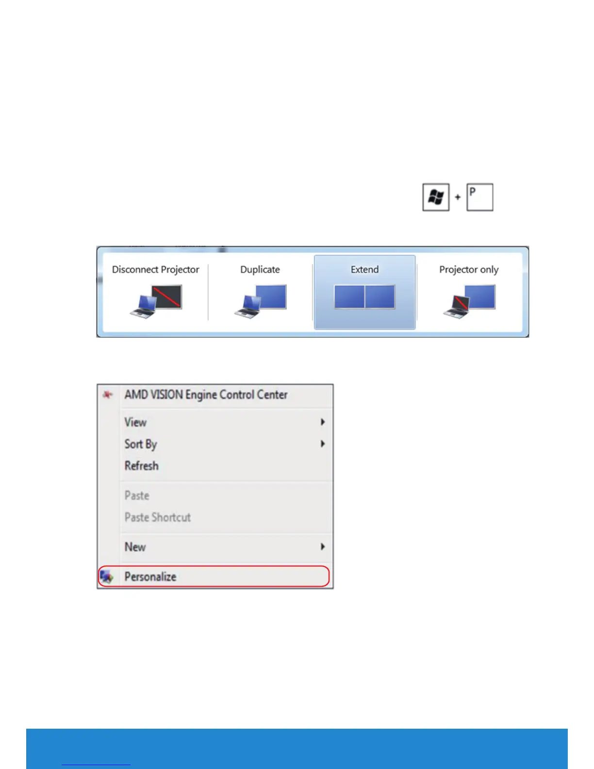 2. While holding down the Windows logo key, press P to toggle between