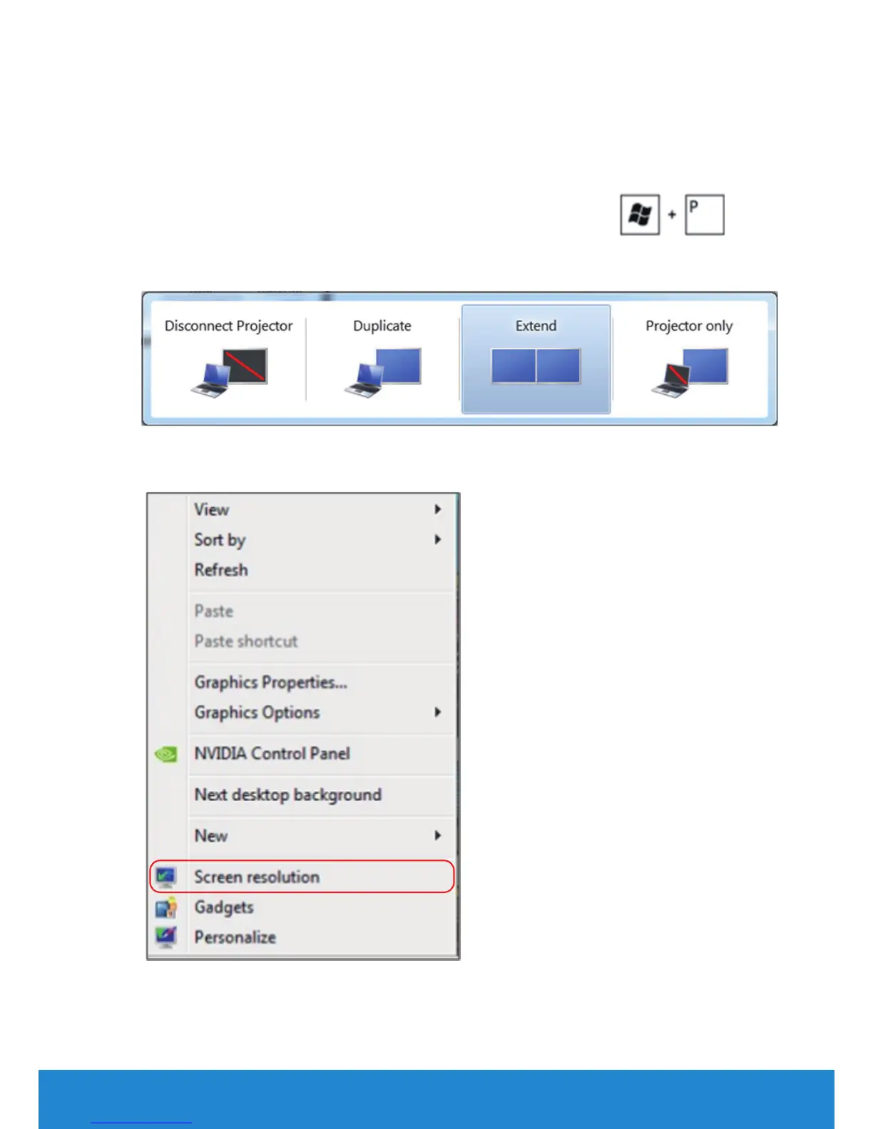 2. While holding down the Windows logo key, press P to toggle between