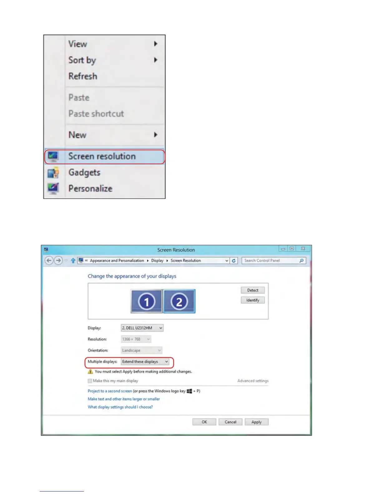 2. Right-click on the desktop and click Screen resolution.