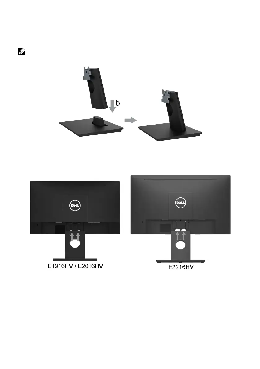 b. Slide the monitor stand body in the correct direction down onto the stand