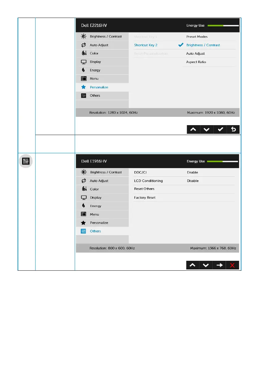 Dell E1916HV - Other Menu Settings; Reset Shortcut Key Settings