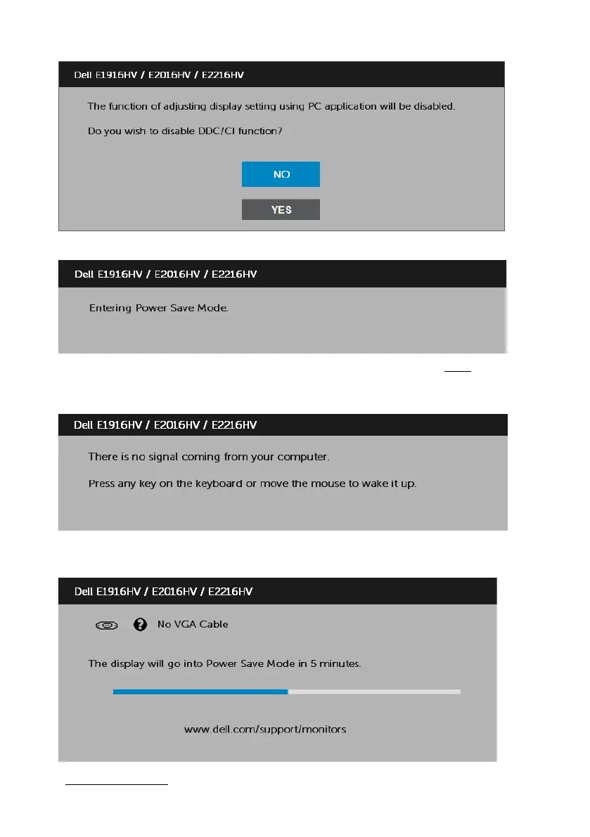 If VGA cable is not connected, a floating dialog box as shown below appears. The