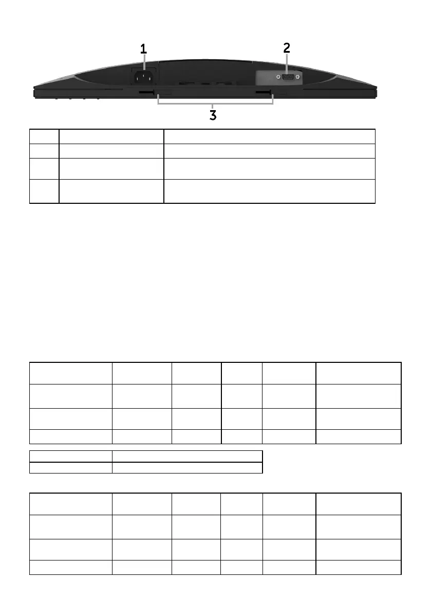 1 AC power connector To connect the monitor power cable.