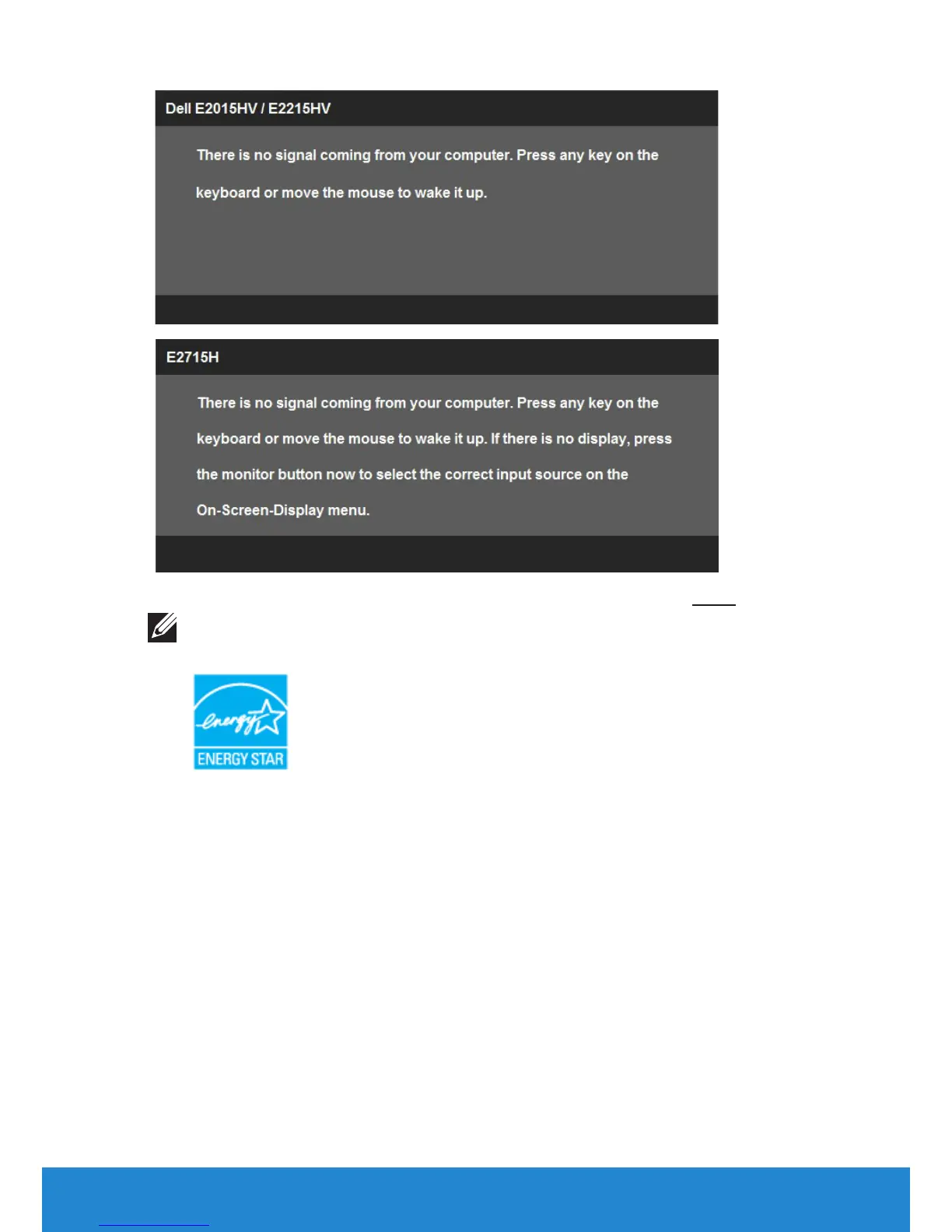 NOTE: The Dell E2015HV/E2215HV/E2715H monitor is ENERGY STAR®-