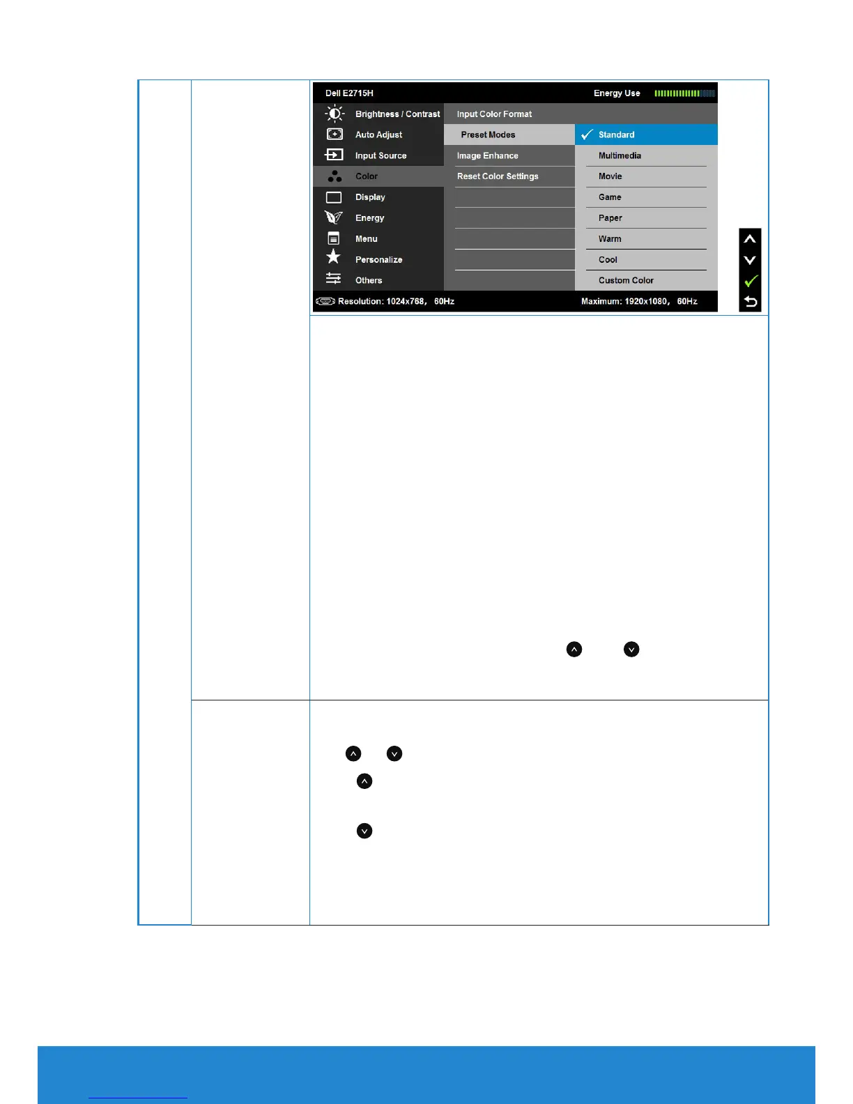 • Standard: Loads the monitor's default color