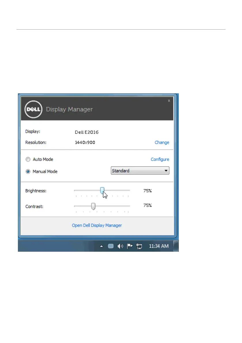The Quick Settings dialog box also provides access to Dell display manager’s