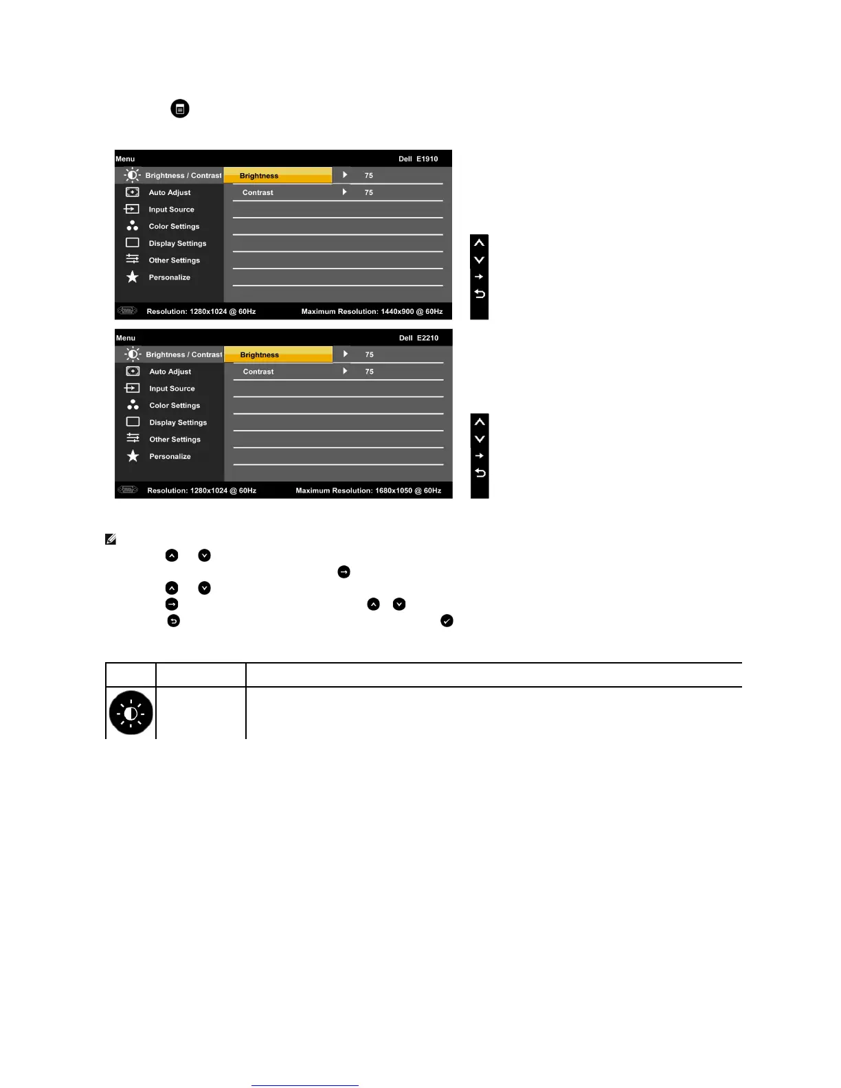Press the buttontoentertheslidebarandthenusethe or buttons, according to the indicators on the menu, to make your changes.