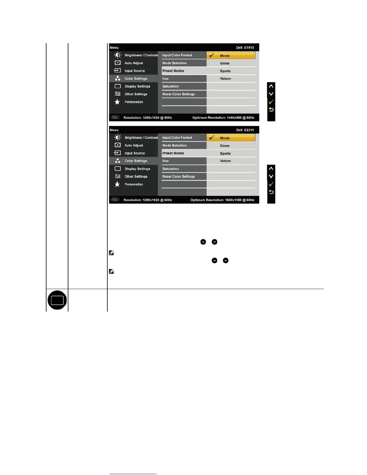 NOTE: Hue adjustment is available only in the Video mode.