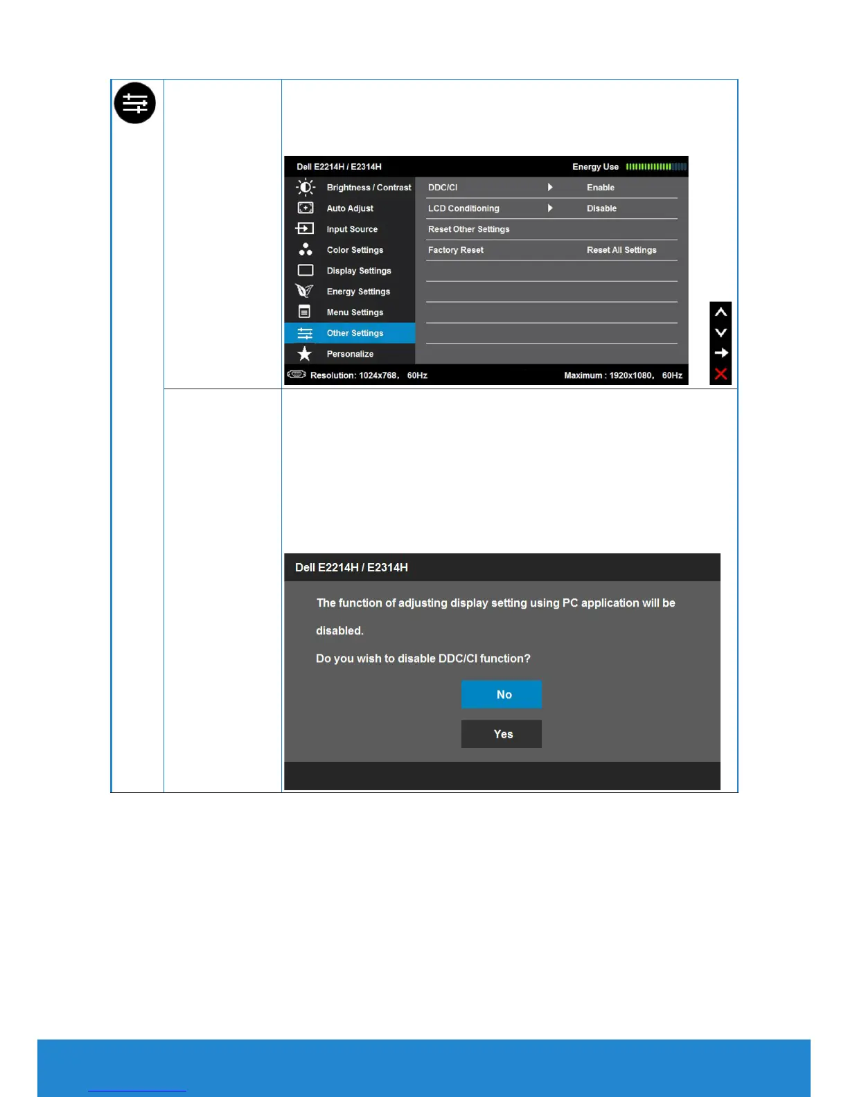 Disable: Disables the DDC/CI option and the following