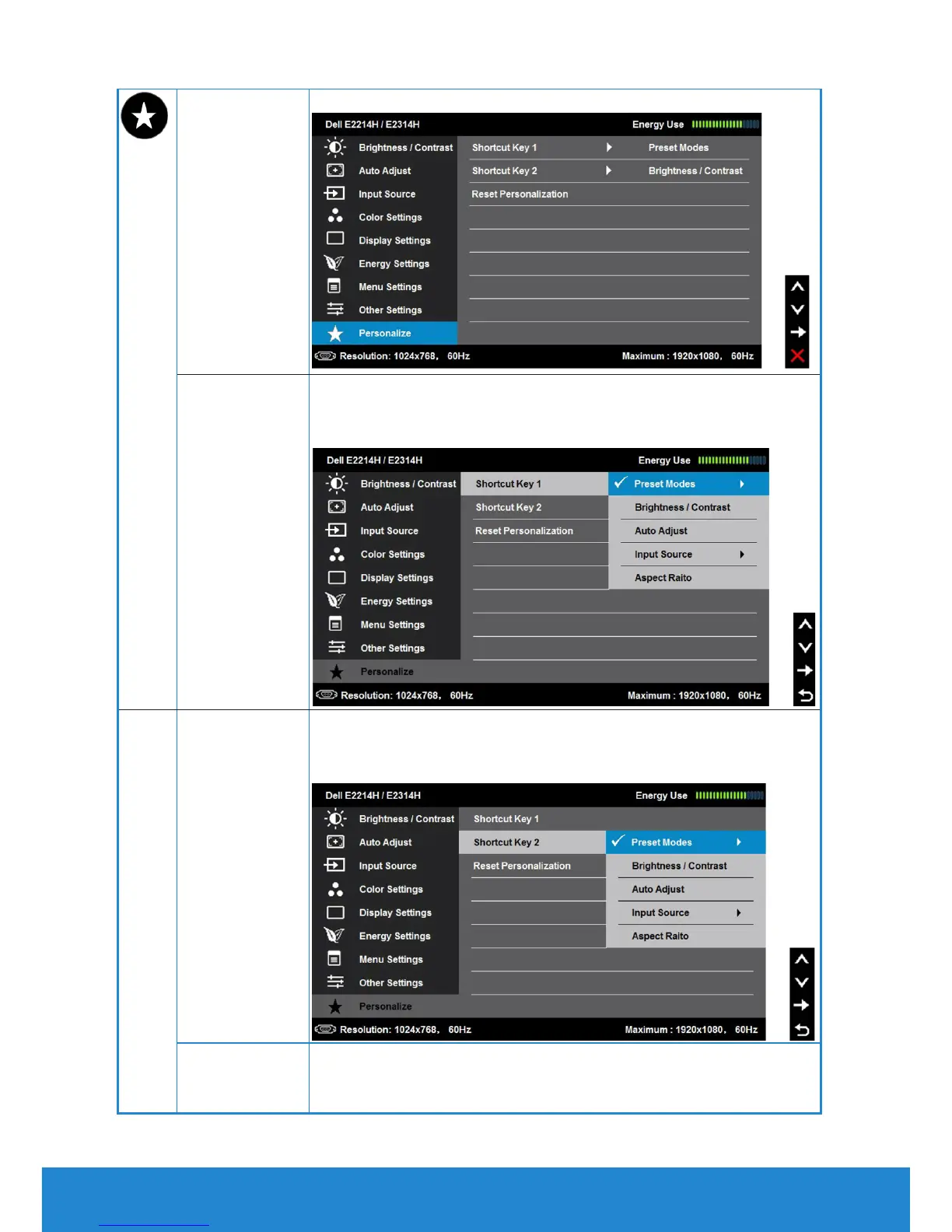 Personalize Selecting this option allows you to set two shortcut keys.