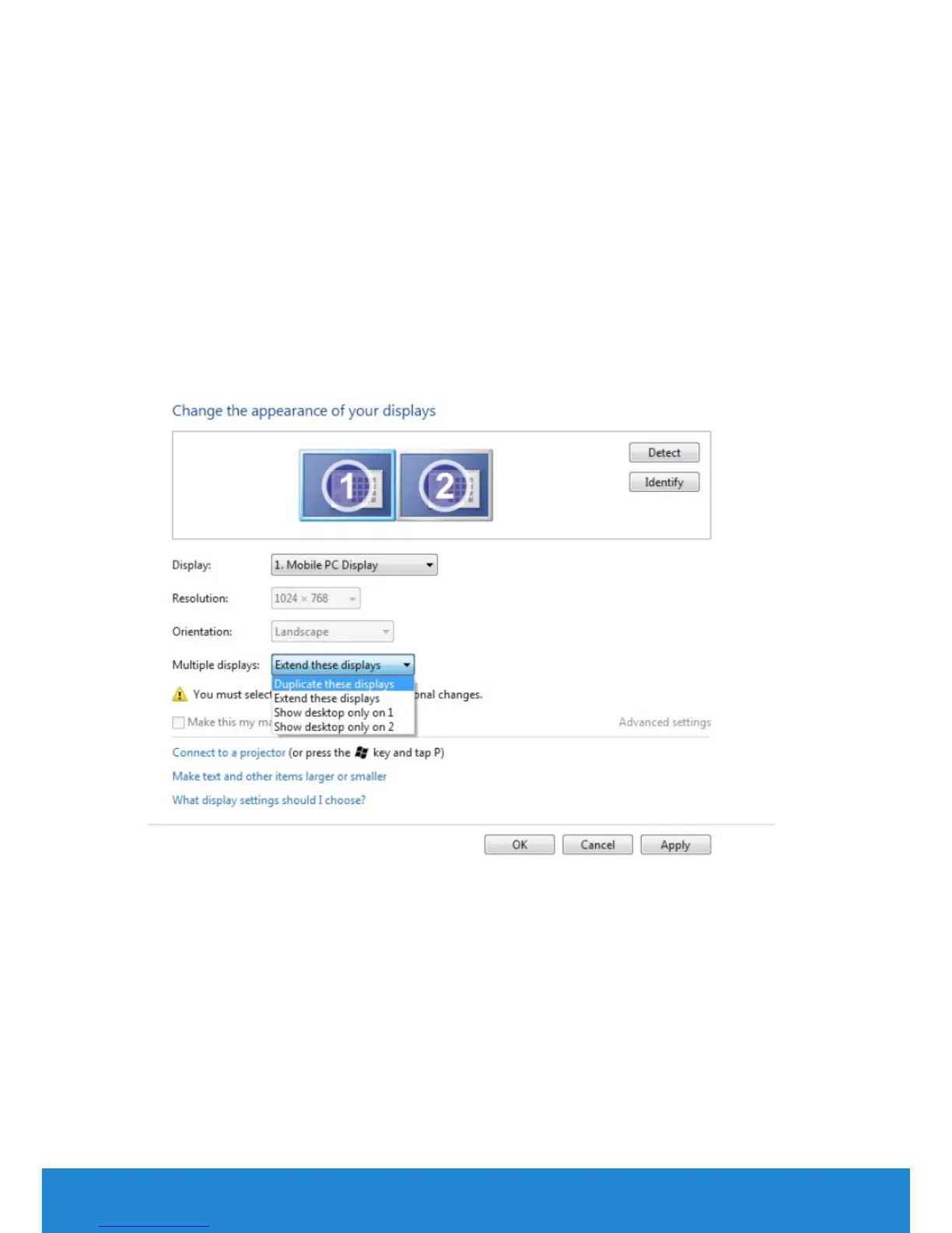 • Duplicate these displays: Duplicate the same screen on two monitors
