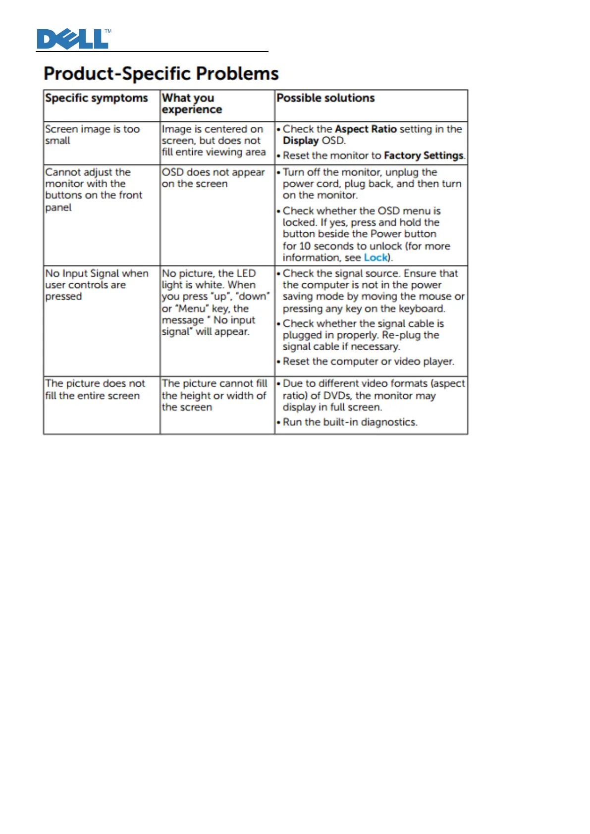 Dell E2216HV - Product-Specific Problems