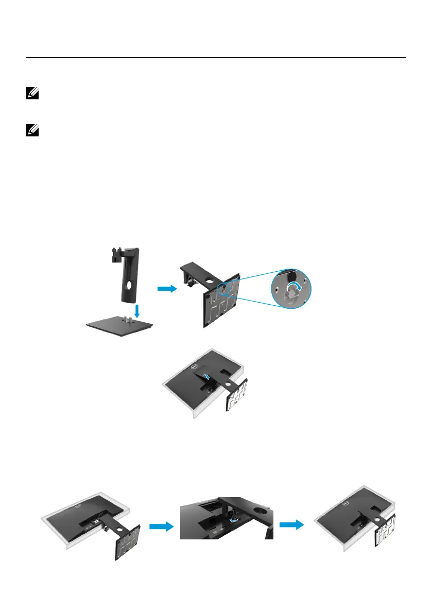b. Slide the monitor stand body in the correct direction down onto the stand base.