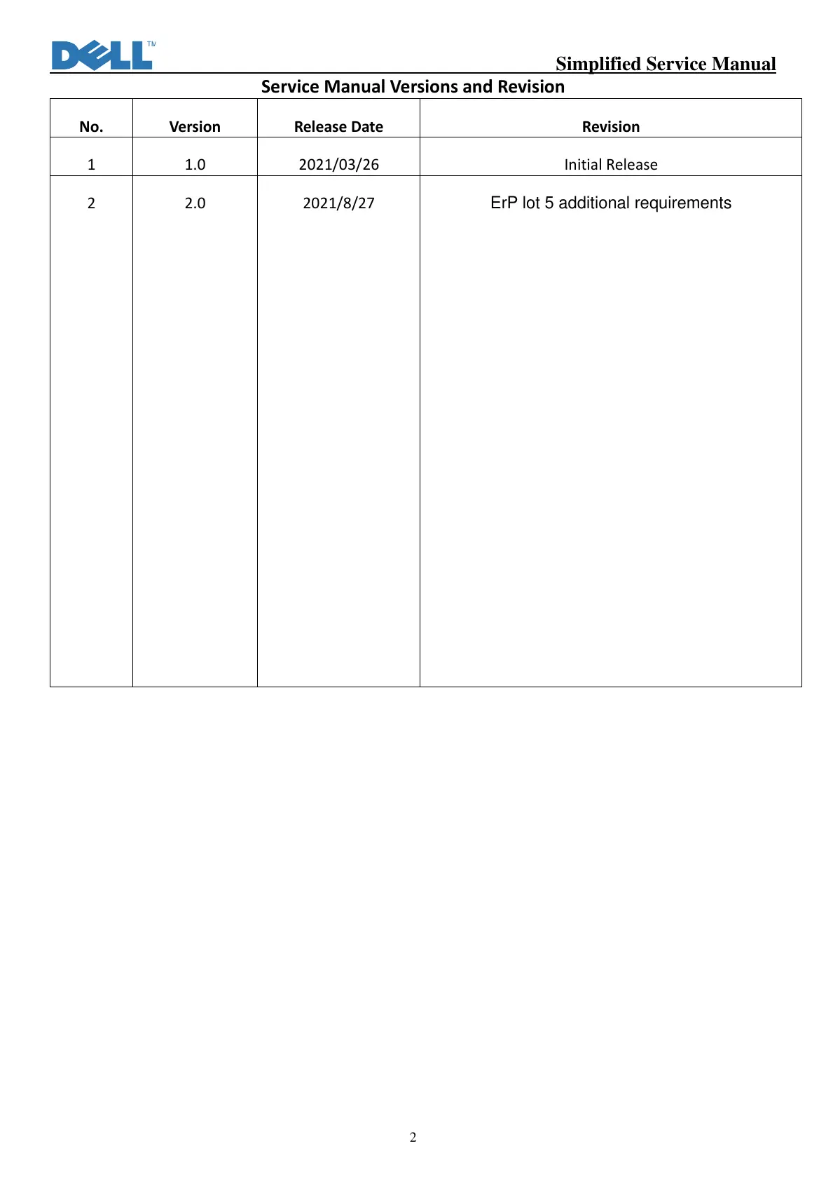 Service Manual Versions and Revision