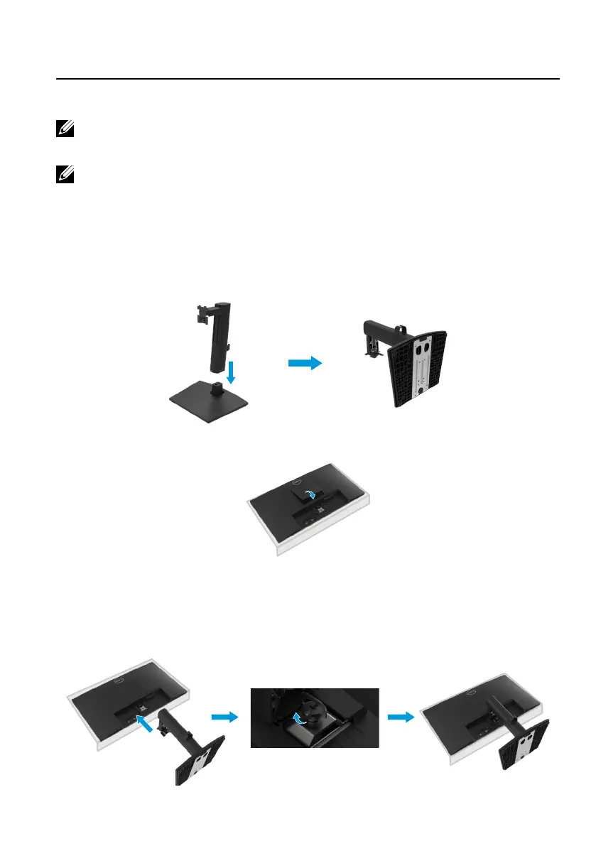b. Slide the monitor stand body in the correct direction down onto the stand base