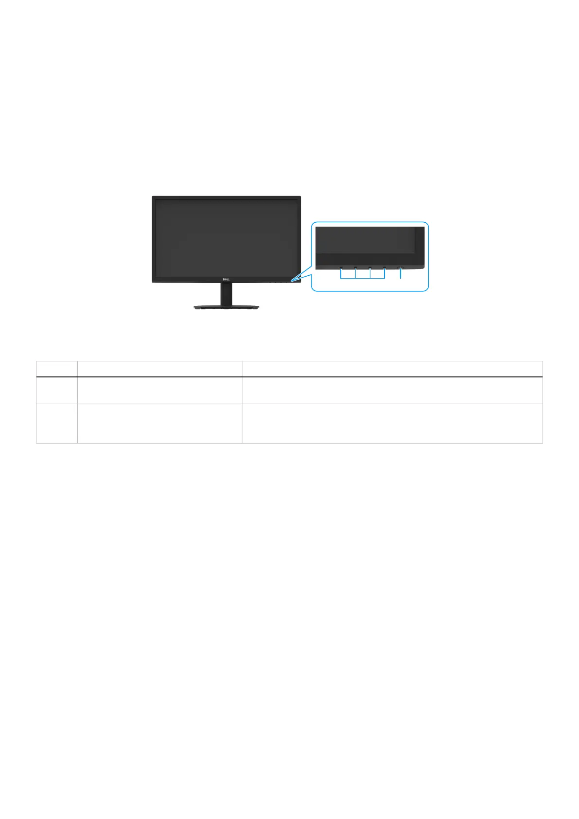 2 Power On/Off button (with LED indicator) To turn the monitor on or off.