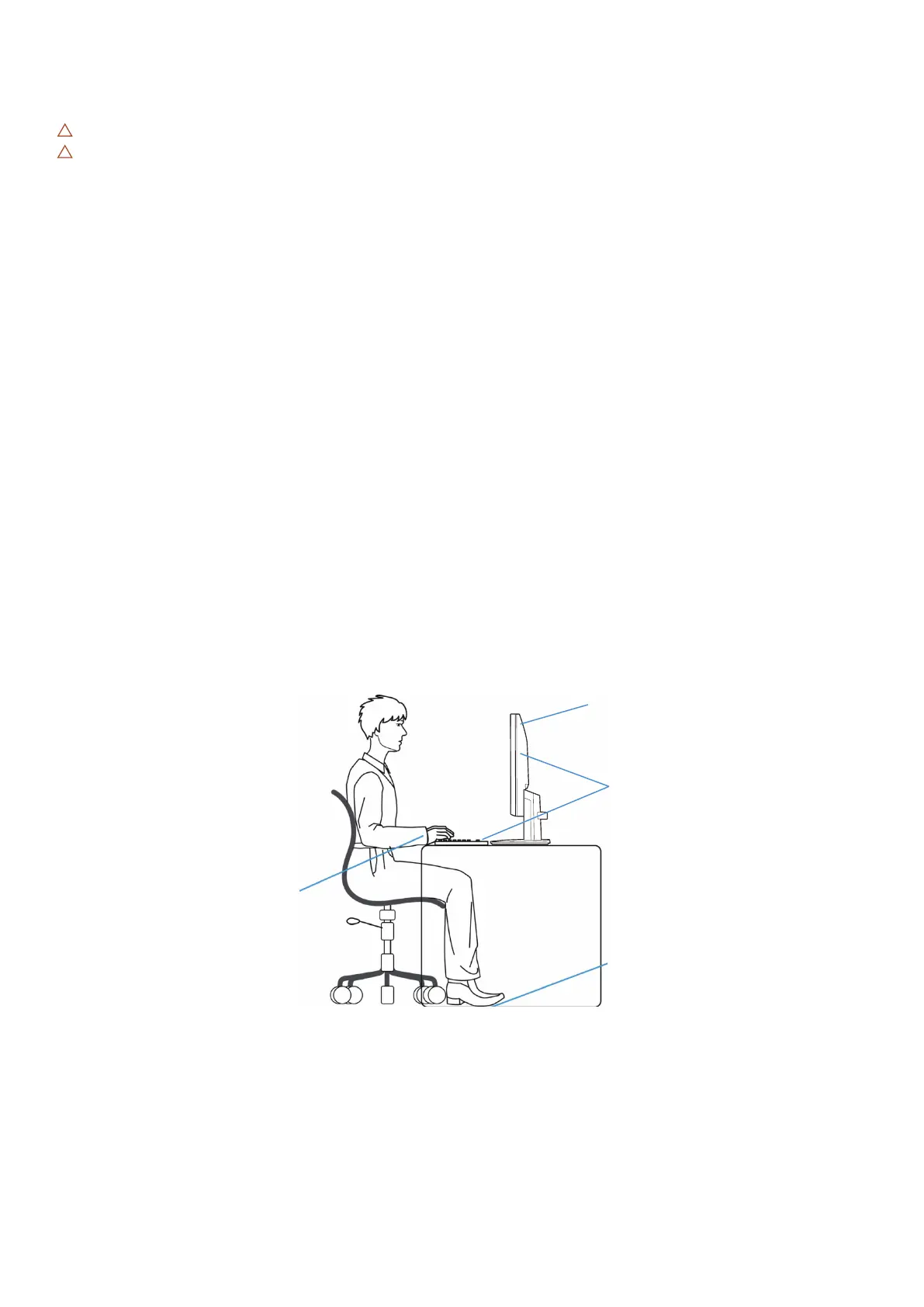 • To reduce the risk of eye strain and neck, arm, back, or shoulder pain from using the monitor for long periods of time, we recommend
