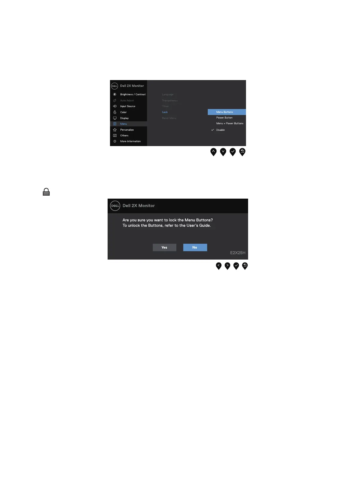 2. When the following message appears, select Yes to lock the buttons. Once locked, pressing any control button will display the lock
