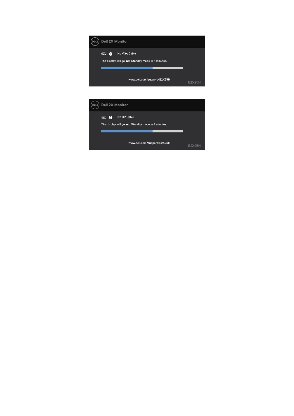 If VGA or DP cable is not connected, a floating dialog box appears. The monitor will enter Standby mode after 4 minutes if left at this state.