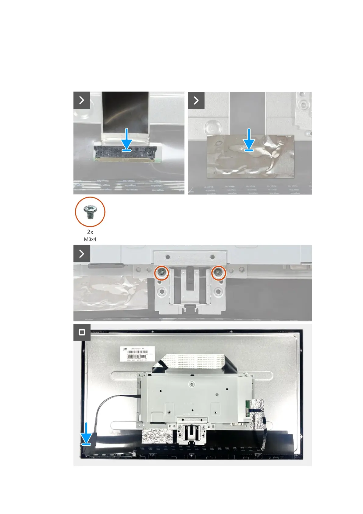 2. Replace two screws (M3x4) to secure chassis assembly to display panel.