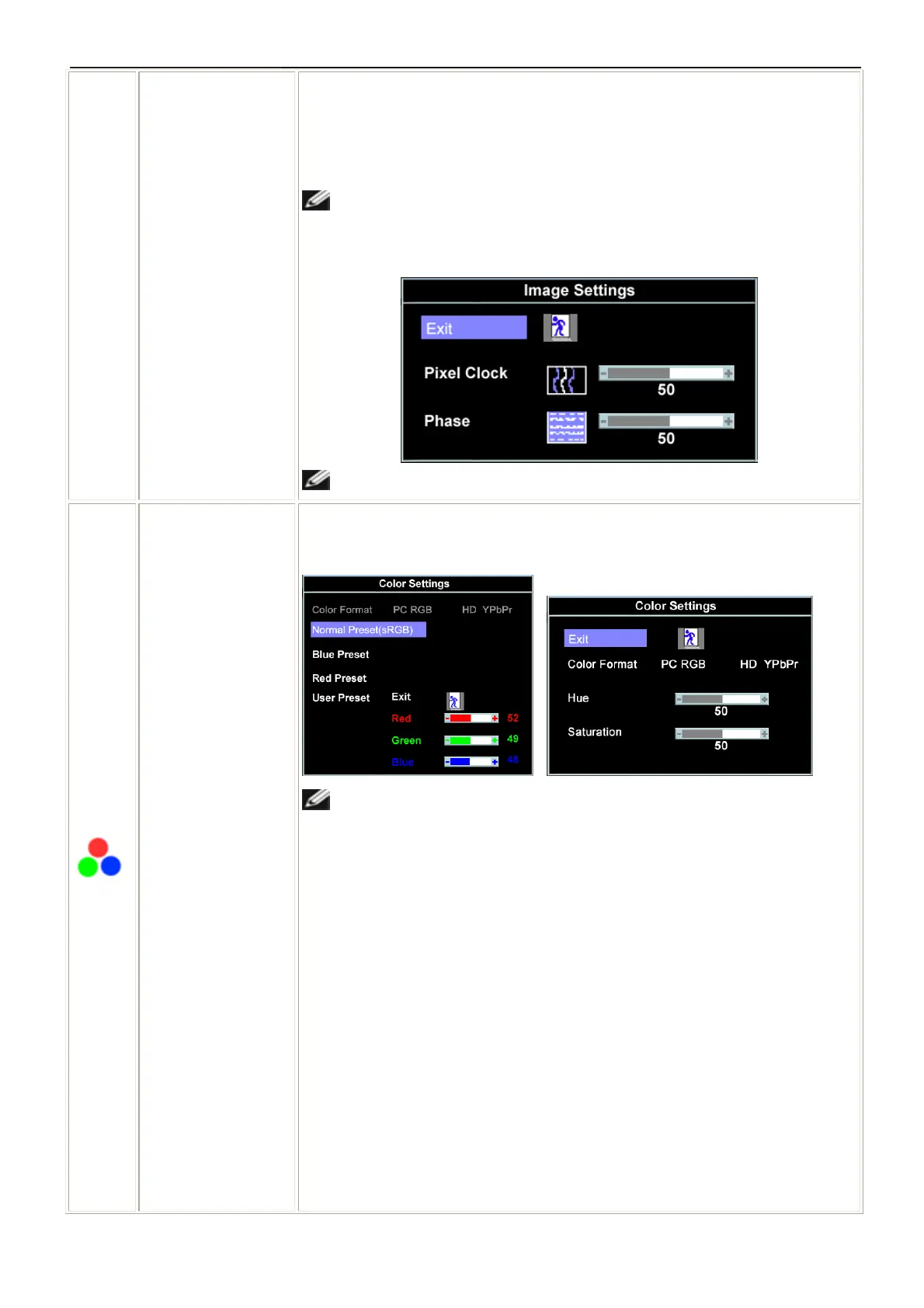 NOTE: Pixel Clock and Phase Adjustments are only available for