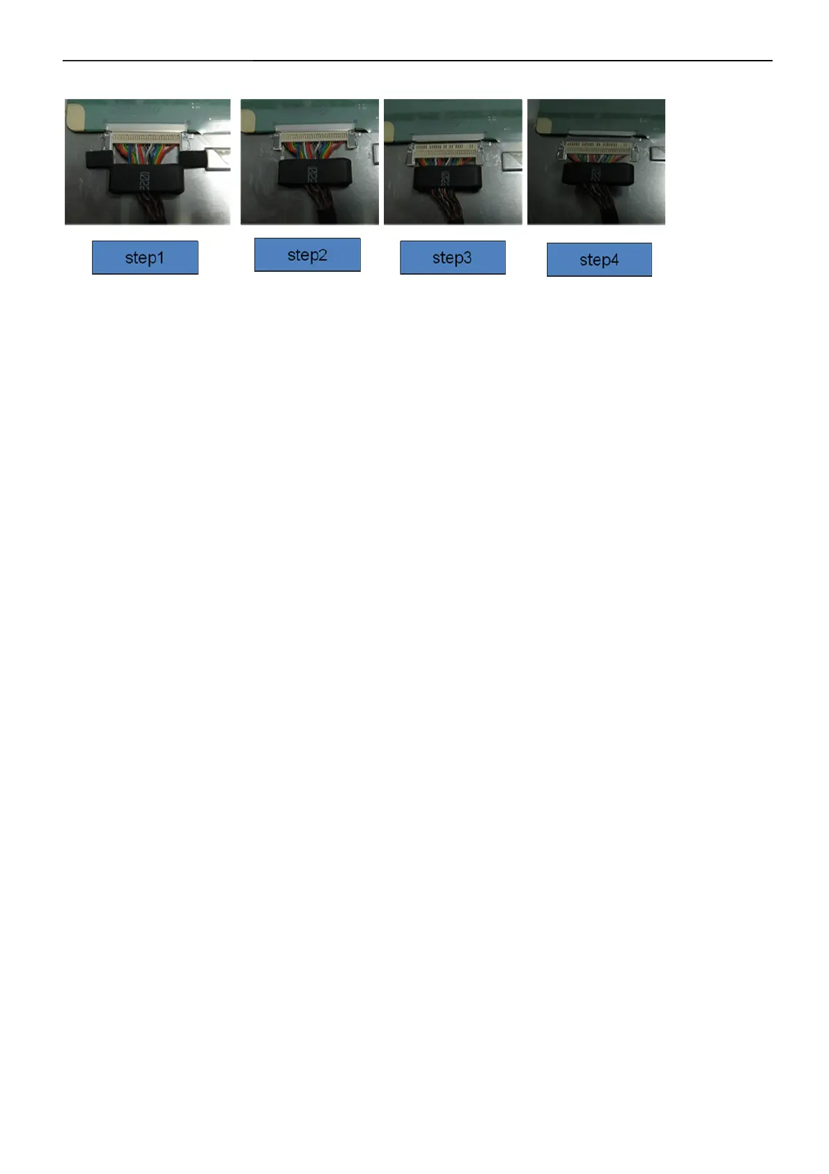 • Step3:pull out LVDS cable via pressing side-clip, but the core is still sticked there.