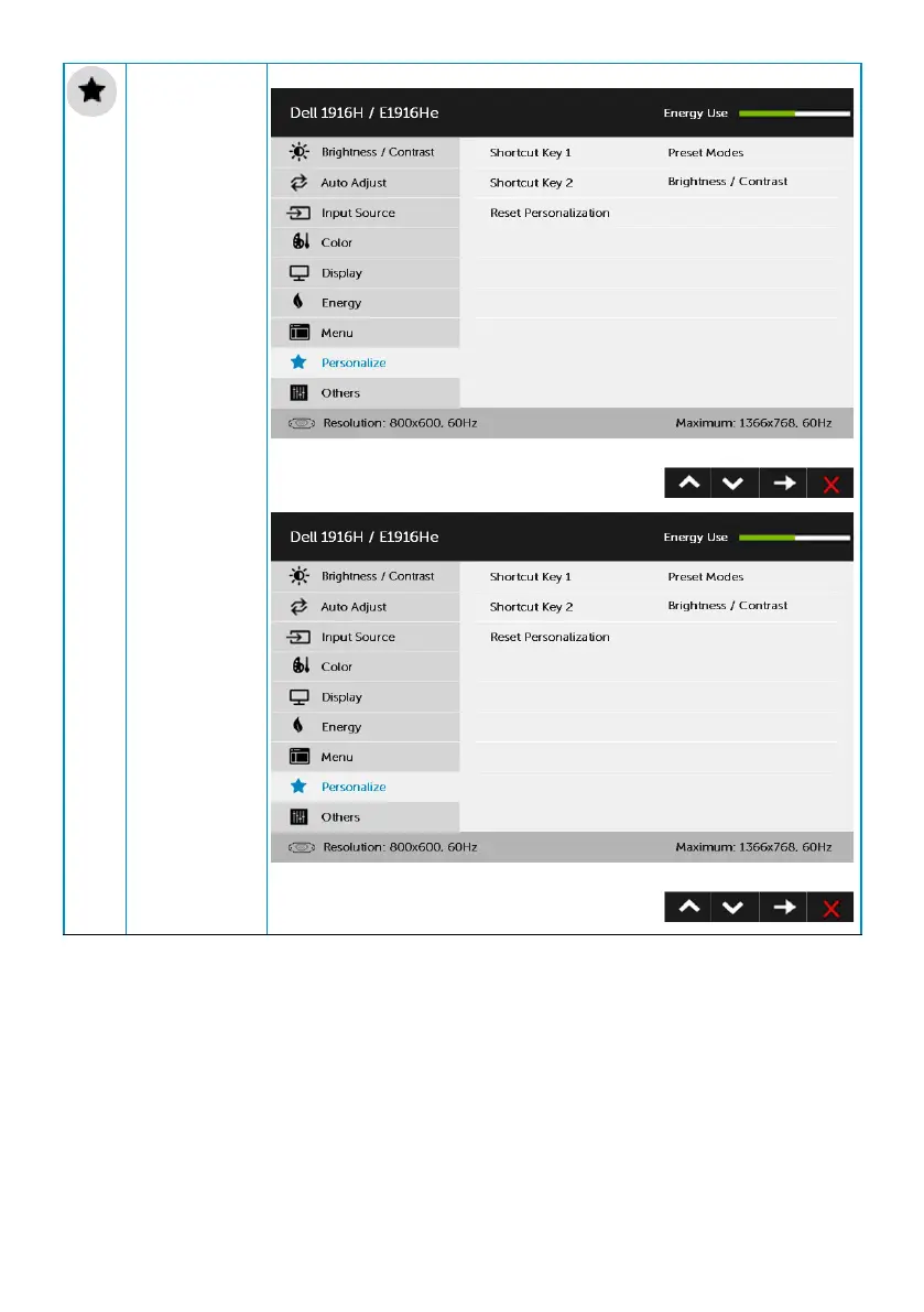 Personalize Selecting this option allows you to set two shortcut keys.