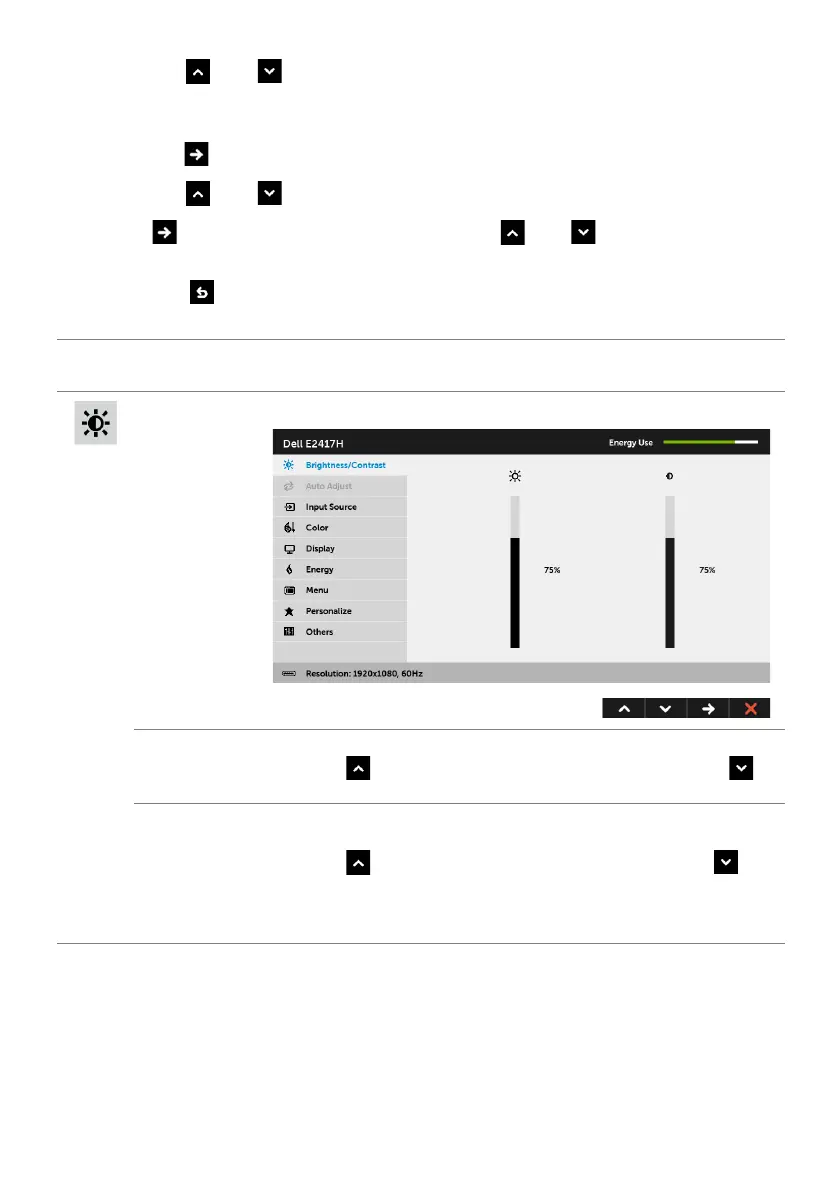 ess the and buttons to move between the setting options. As you move