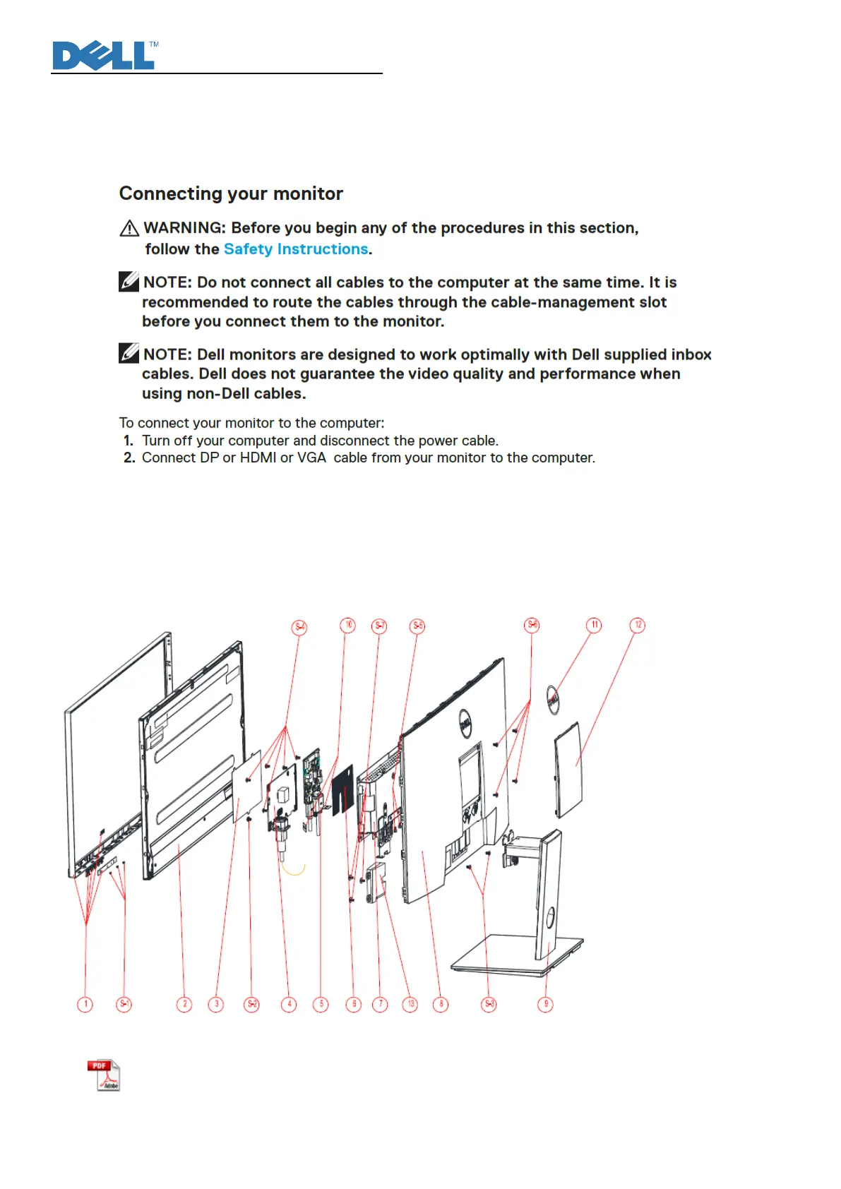 Dell E2420HS - Important Safety Notice; Connecting your monitor; Exploded View and Parts List