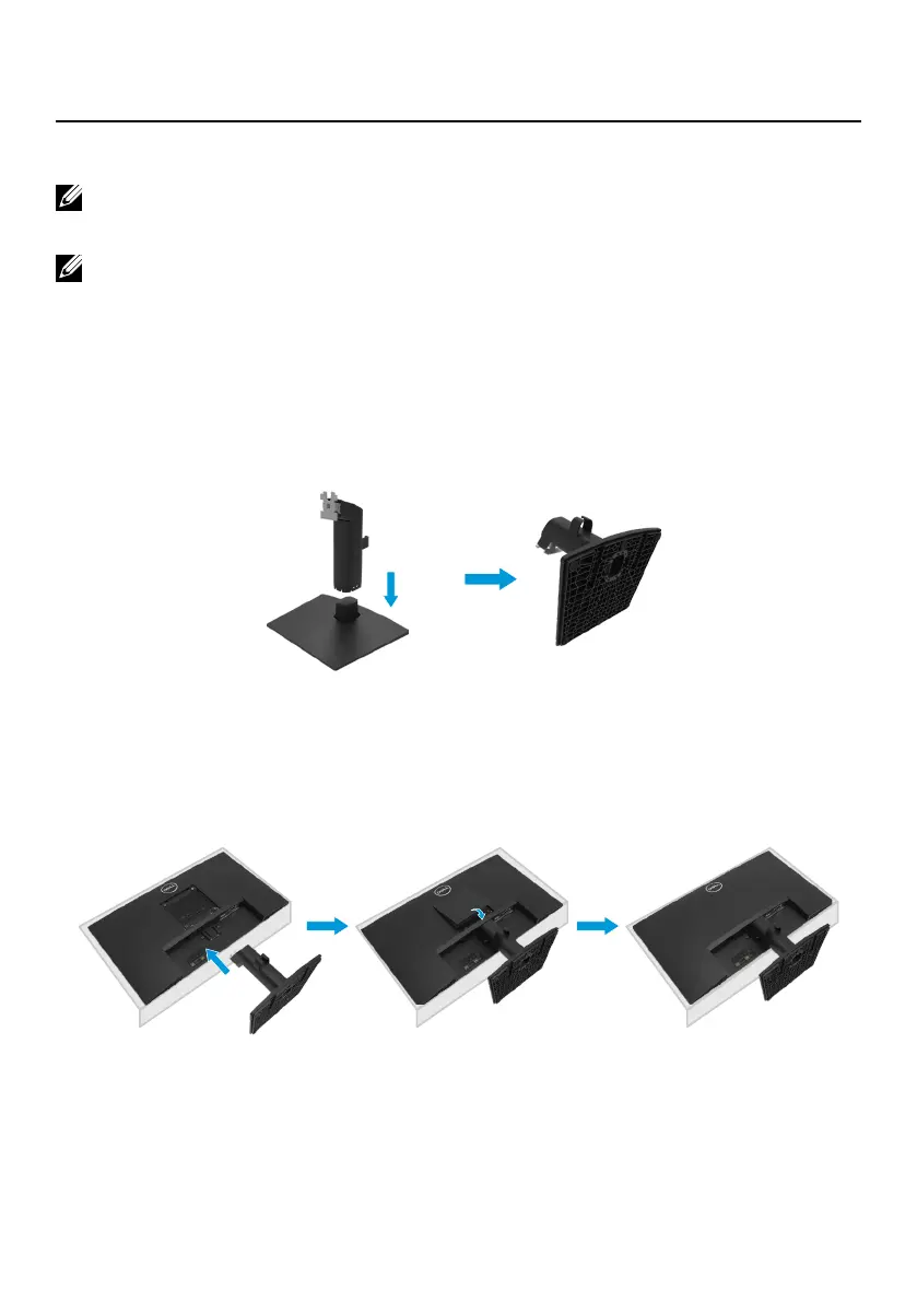 b. Slide the monitor stand body in the correct direction down onto the stand base