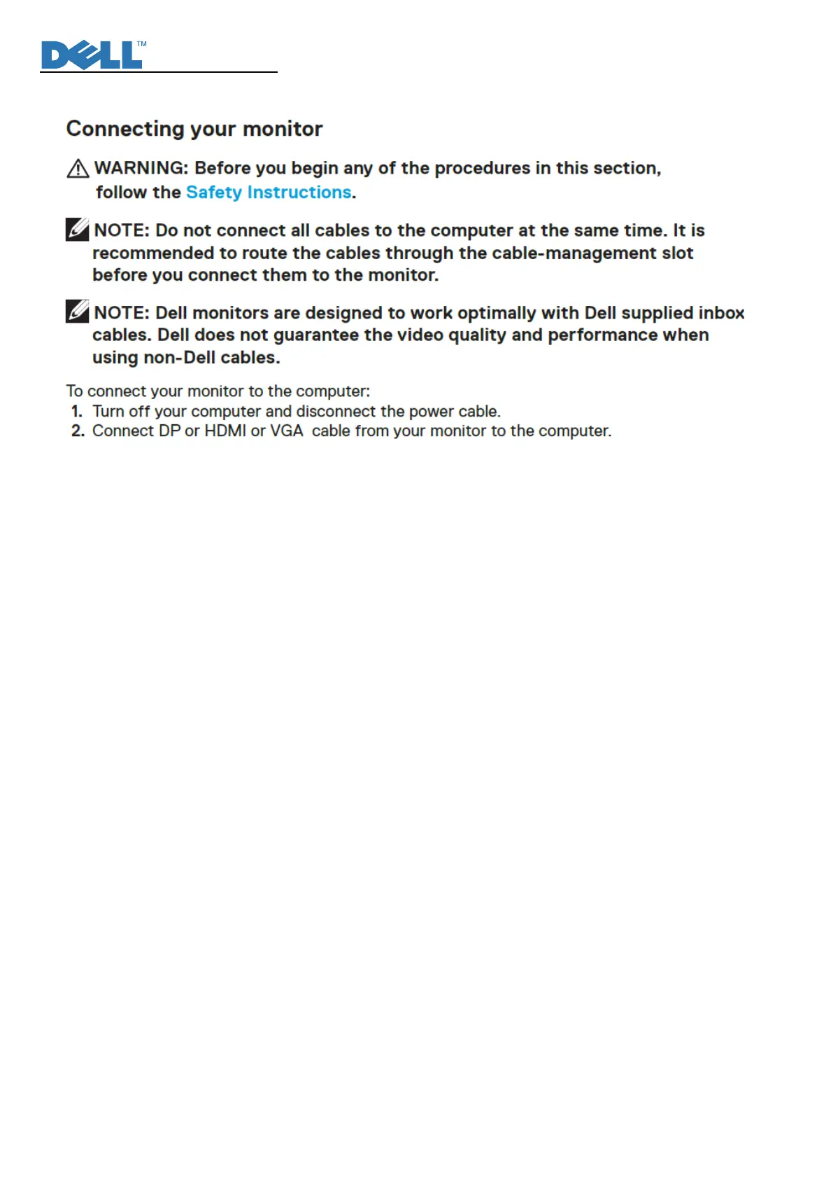 Dell E2422HN - Important Safety Notice; Connecting Your Monitor