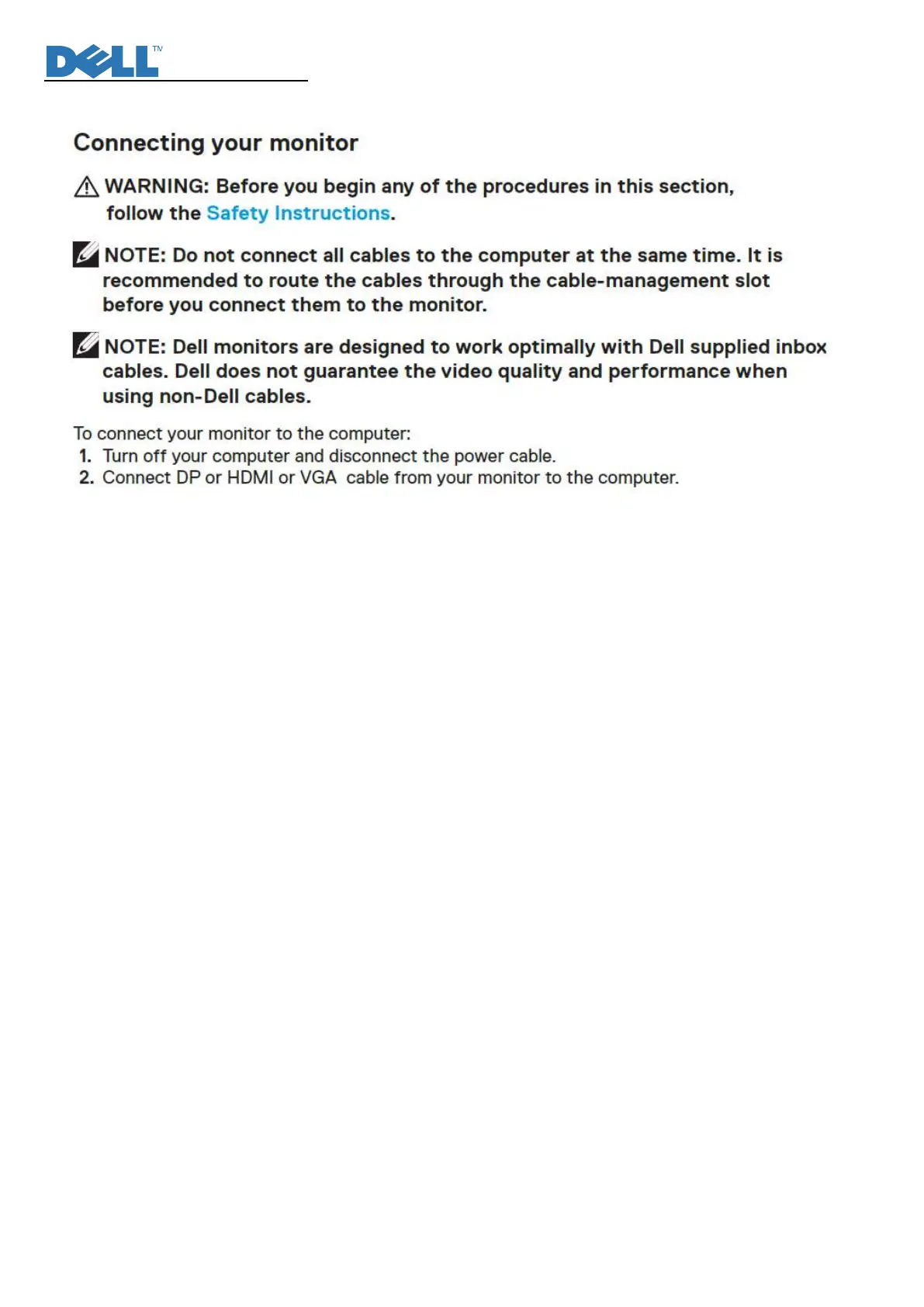 Dell E2423HN - Important Safety Notice; Connecting Your Monitor