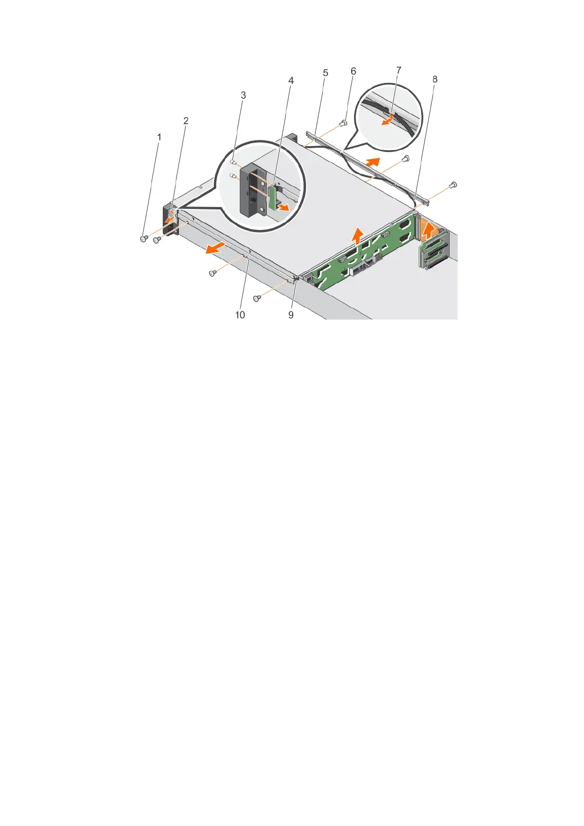 5. cable tube on the left side of the chassis 6. screws on the cable tubes (6)